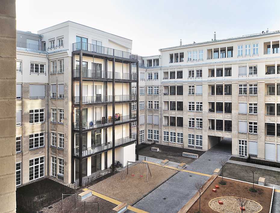Umnutzung eines Industriedenkmals mit ergänzenden Neubauten zu einem komplexen innerstädtischen Wohnensemble mit 398 Wohneinheiten in der Chausseestraße in Berlin