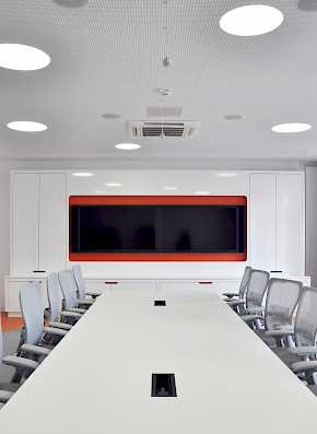 Die größte Herausforderung dieses Projektes lag in der Umsetzung der teilweise unkonventionellen Ideen nach deutschen Standards und der Einhaltung des Kostenkorsetts. Insbesondere die Koordination und Gestaltung der exponierten haustechnischen und akustischen Elemente war von großer Bedeutung.