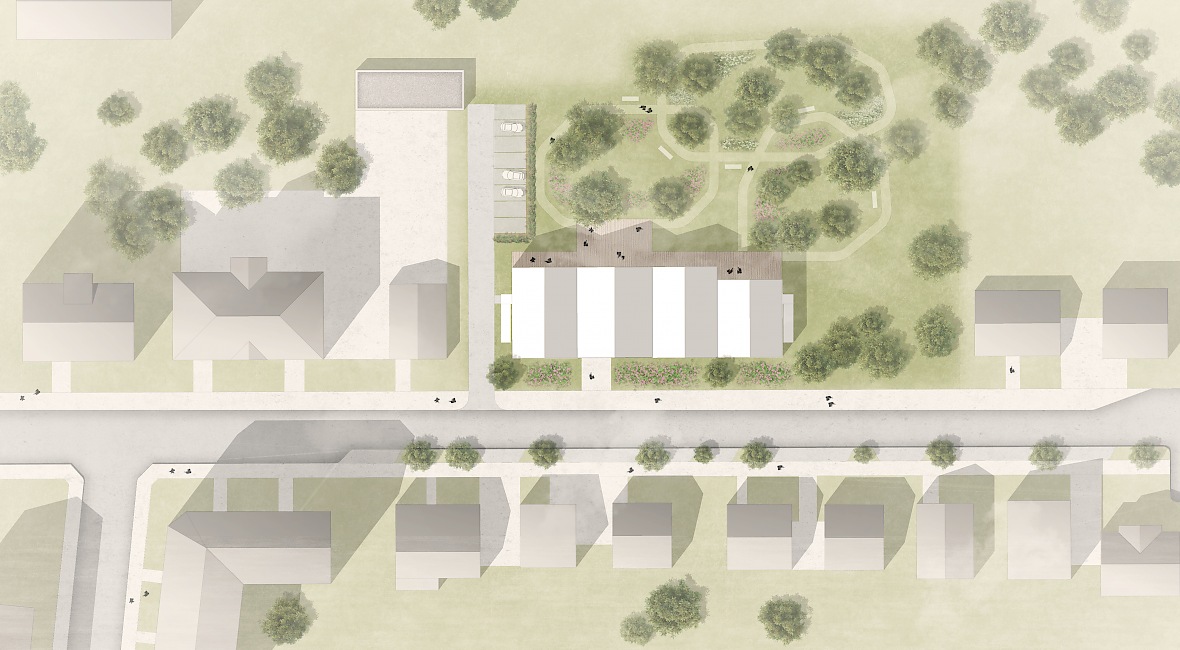 Ziel des Entwurfs ist es, die Bewohner an ihrem letzten Zuhause so gut wie möglich ins Leben zu integrieren, ihnen aber trotzdem die Möglichkeit des Rückzugs zu geben.