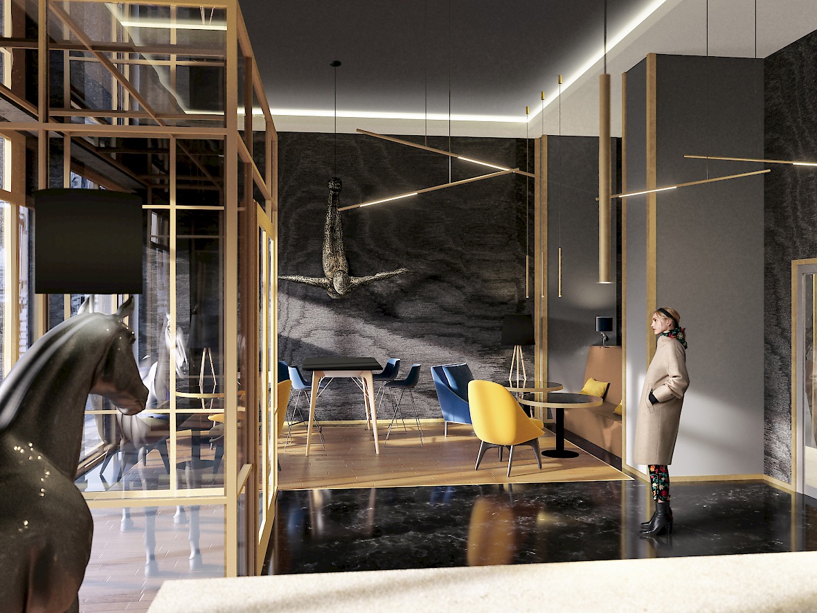 Interiorkonzept für ein Wohn- und Geschäftshaus mit 124 Wohneinheiten und Gewerbeeinheiten im Erdgeschoss
