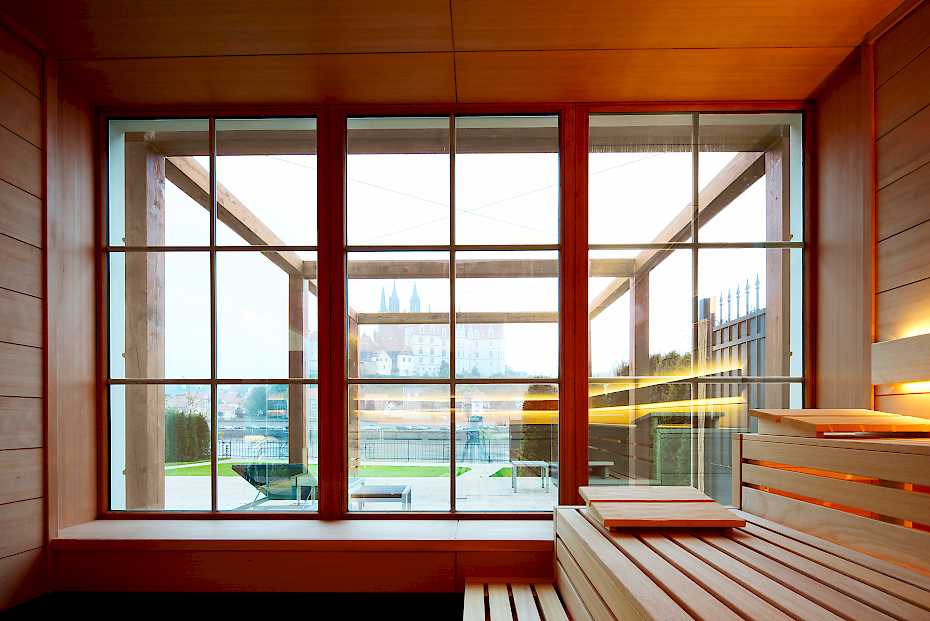 Das 4-Sterne Parkhotel in Meißen erweitert sein Serviceangebot um einen SPA Bereich. Die Herausforderung bestand darin, trotz räumlicher Begrenzung ein Konzept zu finden, welches den Besucher in die Welt der Entspannung entführt und die Einzigartigkeit des Ortes – den Ausblick auf die Albrechtsburg – inszeniert. Hierfür wurde der „Verduta“-SPA in drei Bereiche eingeteilt: Der Empfang und die Behandlungsräume erinnern mit ihrem dunklen Schiffsdielenboden und Messingbullaugen an die Ästhetik der Elberaddampfer. Für ein Gefühl wie Häuser am Meer mit Frische und Luftigkeit sorgen die weißen, holzverkleideten Wände, welche auch die notwendigen Einbaumöbel und Türen zusammenfassen. Alle Wellness-Behandlungsräume fokussieren außerdem mithilfe von Motivtapeten den Blick auf die Raumdecke – das Auge verweilt wie bei einem Trompe-l’oeil. Der dunkel gehaltene Sauna-Bereich hingegen stellt die rauen Naturelemente in den Mittelpunkt: Hitze, Dampf, Wasser und Eis. Die Wärme der finnischen Sauna aus Altholz trifft dabei auf die Kühle des Eises und des schroff gespaltenen Quarzits. Ruhe und Privatheit bieten die Kojen aus gewaschenem Rohleinen mit einem unverwechselbaren Ausblick auf die Elbe und die Burg.