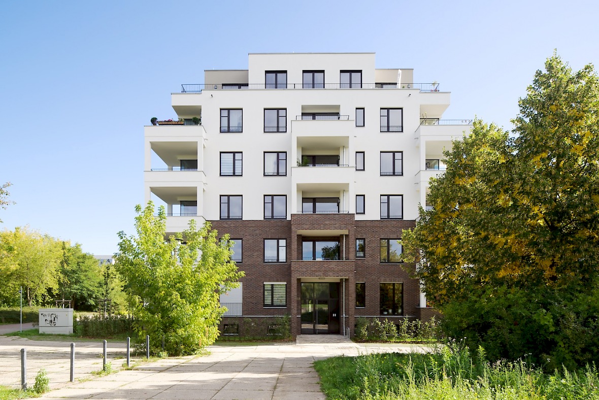 Neubau von drei freistehenden Wohngebäuden mit je 16 Wohneinheiten in der Zschampertaue 54-60 in Leipzig Grünau - nur 5 min fußläufig vom Kulkwitzer See entfernt.